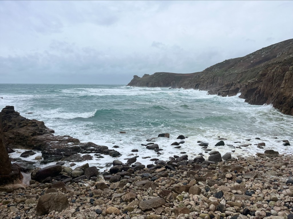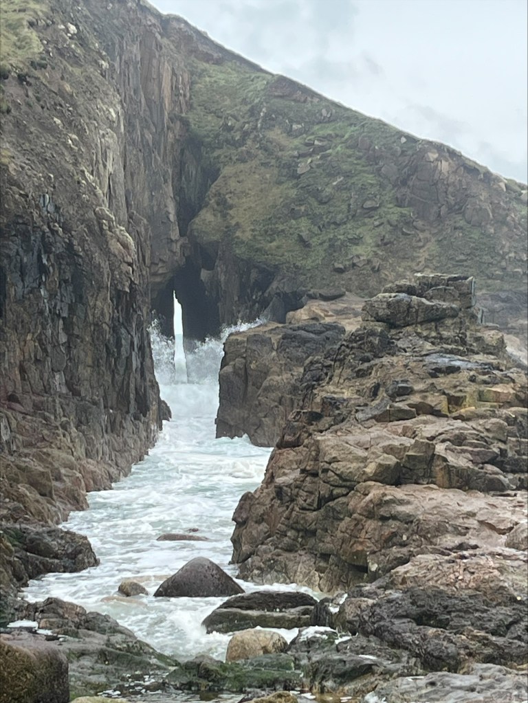 Today I was walking along the coast path to Nanjizal Beach. A very blustery day and being in the elements really helped me to integrate my healing. The wind was at times pushing me off the path. It was difficult to keep grounded and centred. I kept on and I arrived at Nanjizal Beach. Beautiful even in the gloominess and moody sky. The path is there, it twists and turns and we may get blown off course but we will end up at our destination if we trust and have faith.